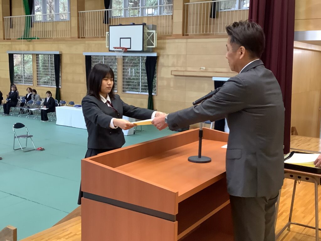 その後の表彰式では、これまでの3年間の学びの中で評価されたことや認定されたものに関して、生徒への授与がありました。