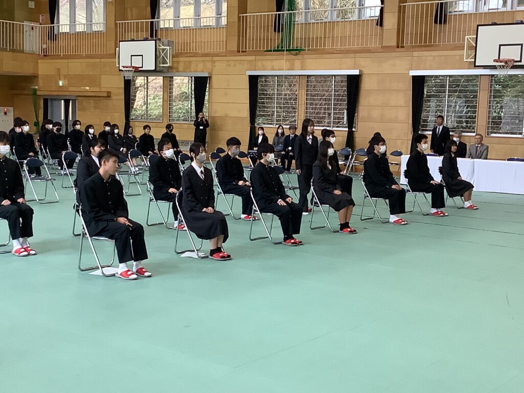 この日は、2日後の3月1日に卒業式を控えた3年生が久しぶりに登校してきました。同窓会入会式では、同窓会長に向けて卒業生代表の生徒が「入会の誓い」を述べました。その後、歓迎の言葉を会長さんからいただきました。耶馬溪校同窓会【渓流会】に13名が新たに加わることになりました。